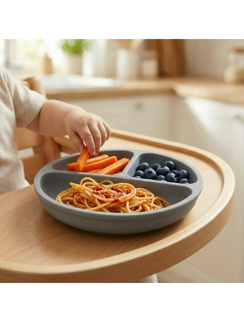 Dimensiuni: Rotunda, cu 3 compartimente; Greutate: usoara, ideala pentru manutele celor mici; Varsta recomandata: 6-36 luni; Material: silicon alimentar, fara BPA.