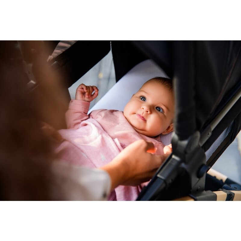 Caruciorul este echipat cu un parasolar mare si fereastra integrata pentru o calatorie confortabila si o ventilatie perfecta. Copertina este captusita cu un material care reflecta razele UV pentru mentinerea temperaturii optime in interiorul acestuia.
