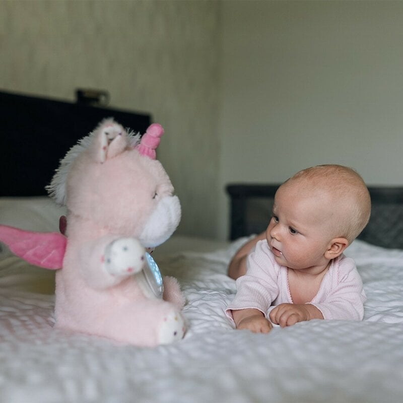 Fabricat din plus ultra-moale, prietenos cu pielea sensibila, Unicornul devine rapid companionul preferat la somn, plimbare, alaptare sau momentele de linistire. ❤️