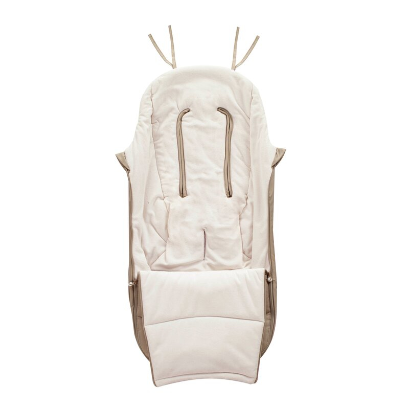 Partea inferioara a sacului este prevazuta cu un material antiderapant, care previne alunecarea acestuia pe scaunul de carucior, asigurand o fixare sigura si confortabila pe toata durata plimbarilor.