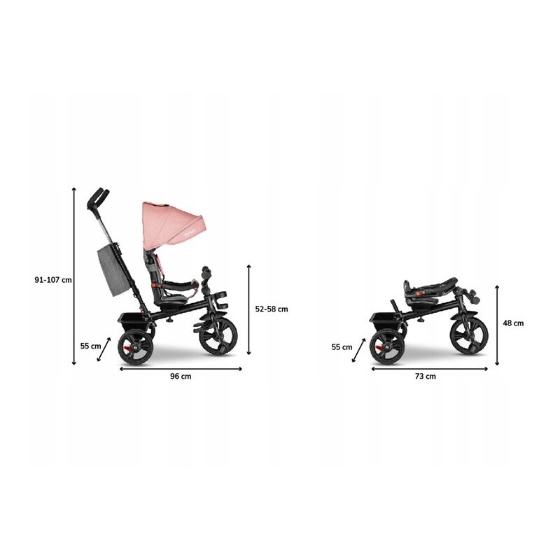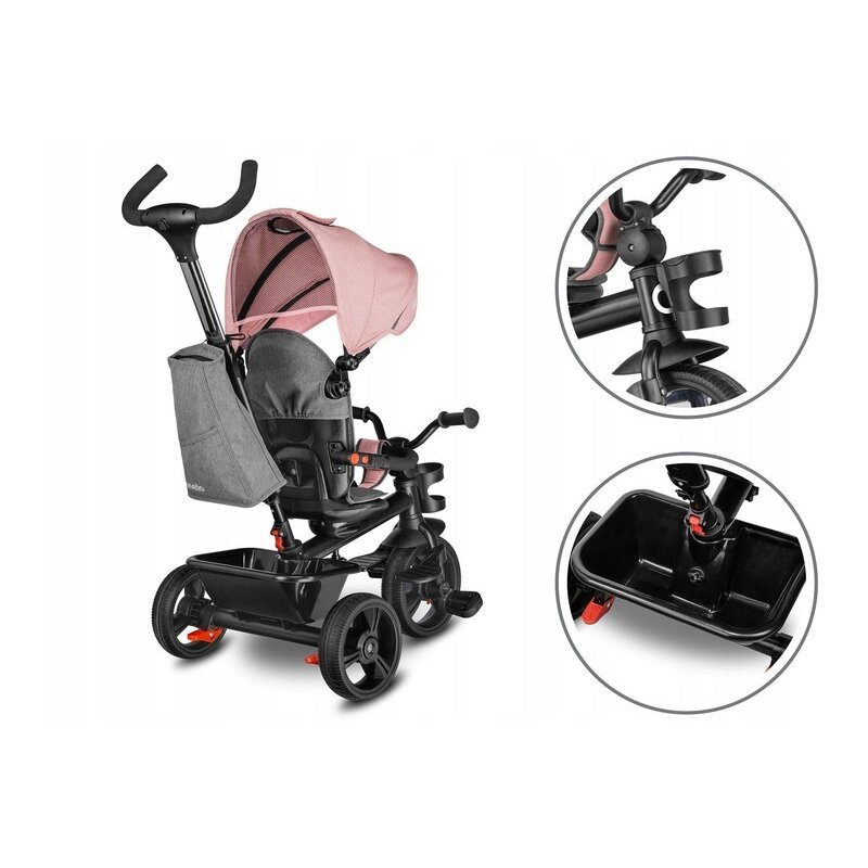 Asamblarea rapida fara utilizarea instrumentelor si dimensiunea compacta a bicicletei Haari o fac o alternativa perfecta la un carucior. Setul de produse include un suport convenabil pentru sticle sau pahare si o geanta pentru accesorii de ingrijire, precum si un cos spatios pentru alte articole necesare. Vehiculul este echipat cu un baldachin reglabil cu o plasa transparenta incorporata, care, la fel ca suportul pentru picioare, bara sau manerul, poate fi usor demontat.