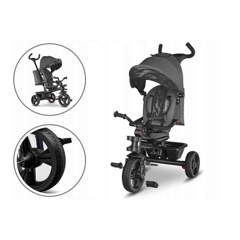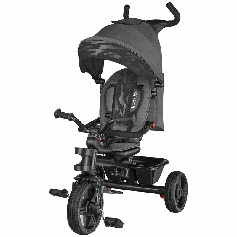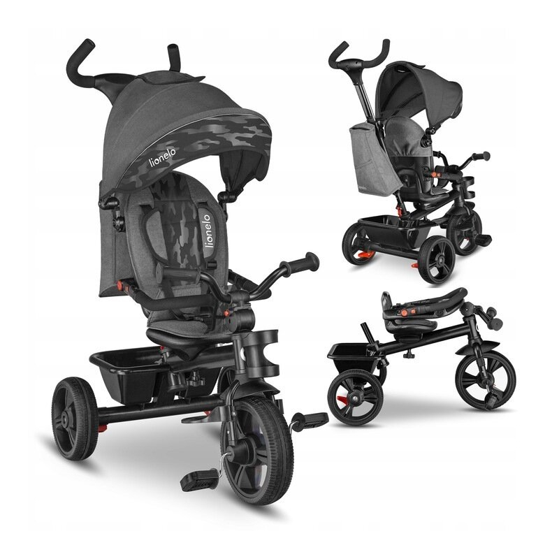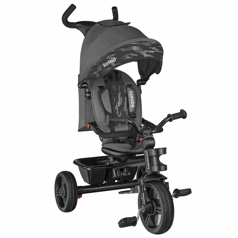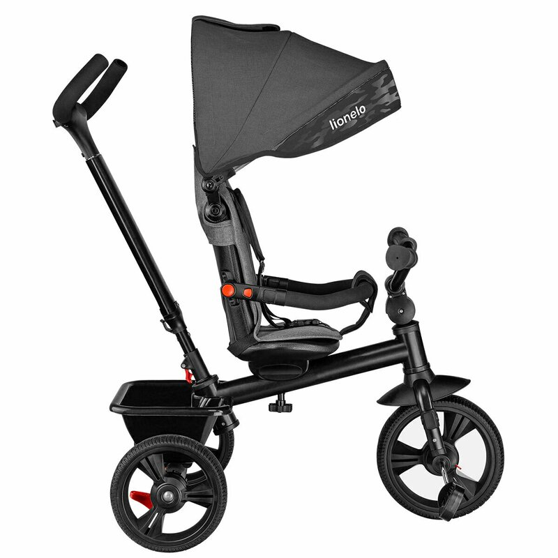 Lionelo - Tricicleta Haari, Suport picioare, Control al directiei, Scaun reversibil, Rotire 360 grade, Pliabila, Conform cu standardul european de securitate EN71, Gri