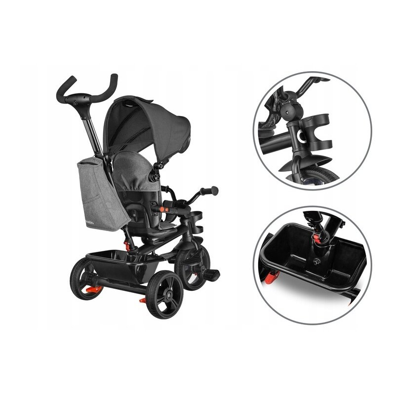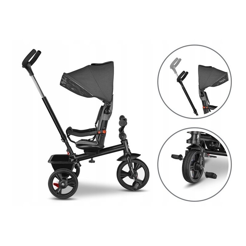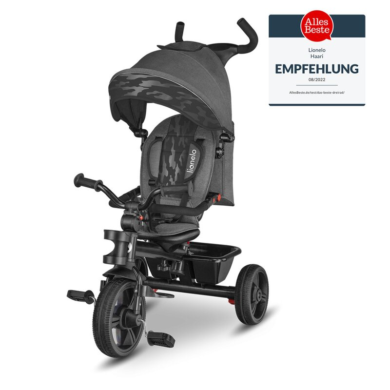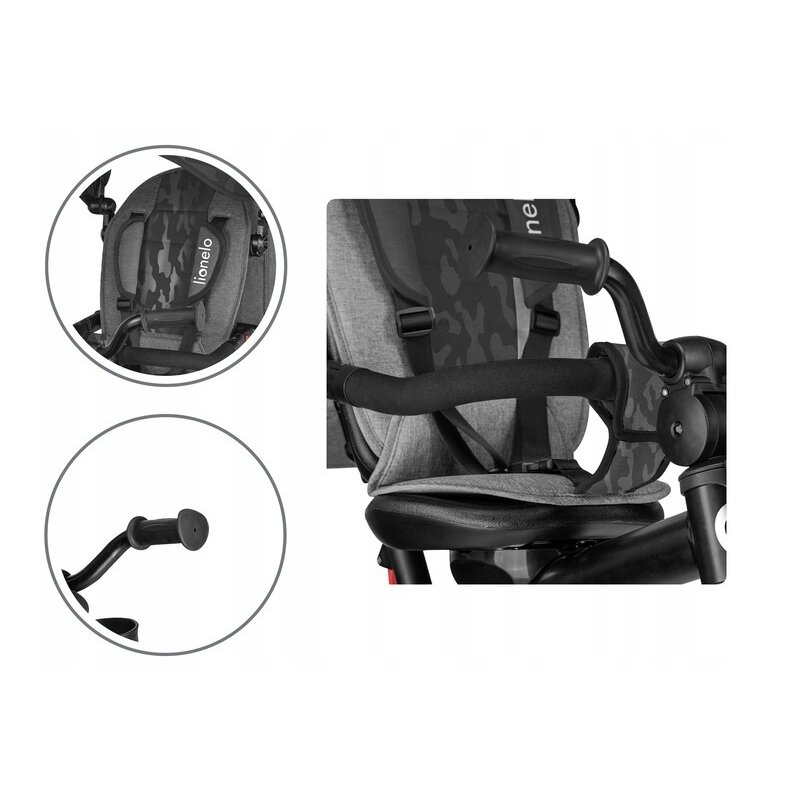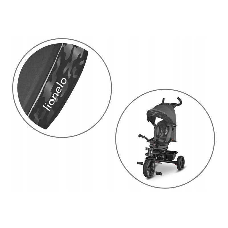 Lionelo - Tricicleta Haari, Suport picioare, Control al directiei, Scaun reversibil, Rotire 360 grade, Pliabila, Conform cu standardul european de securitate EN71, Gri