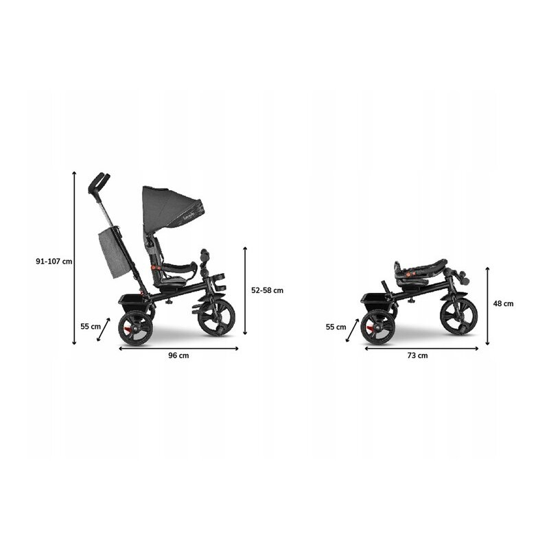 • Dimensiunile produsului: 55 x 96 x 91-107 cm, pliat: 55 x 96 x 51 cm.