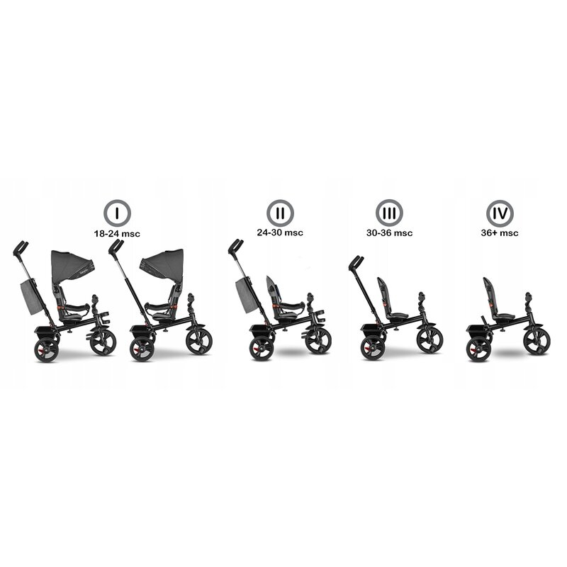 Bicicleta Haari isi adapteaza functiile la nevoile si varsta unui utilizator mic. Scaunul pivotant va permite sa va transportati copilul cu fata sau cu spatele. De la varsta de 18 luni, un copil poate folosi vehiculul sub forma unui carucior. Cand incepe sa atinga pedalele cu picioarele, puteti renunta la suportul pentru picioare si lasati bebelusul sa pedaleze pentru prima data, astfel incat in ​​timp sa poata lua singur carma.
