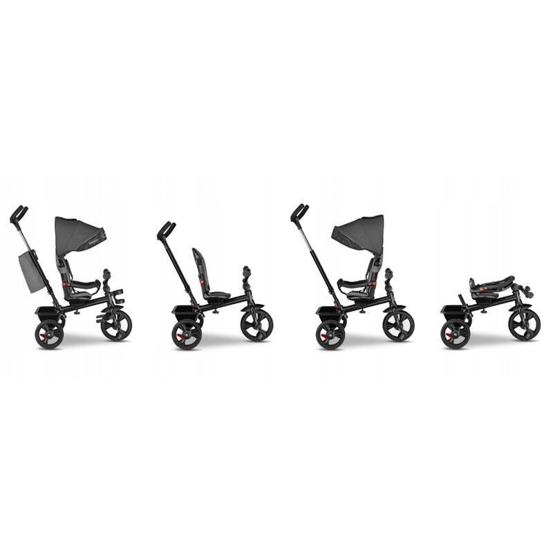 Gama larga de reglare a vehiculului permite rotirea scaunului, astfel incat copilul sa poata calatori inapoi sau in fata.